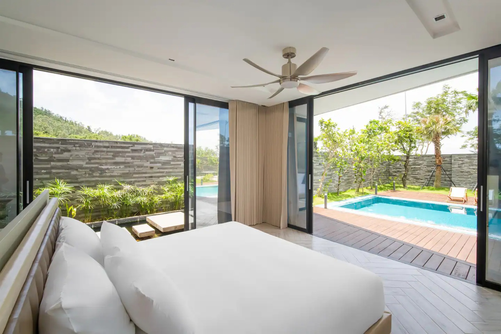 Các phòng khách và phòng ngủ được điều khiển bằng giọng nói và có tầm nhìn ra biển, núi, hồ bơi và hồ cá koi